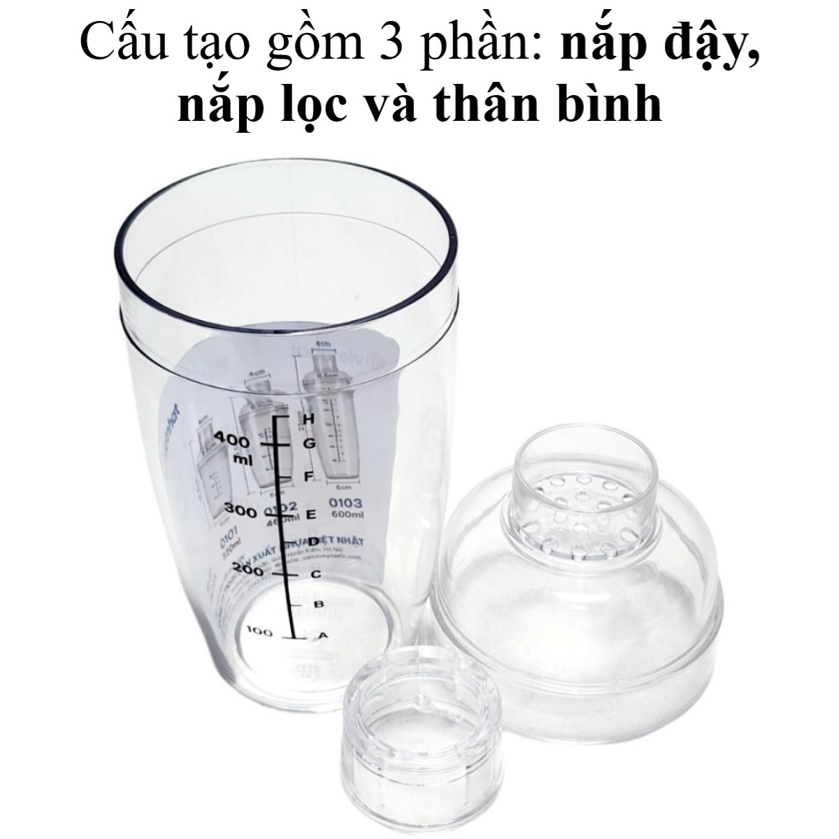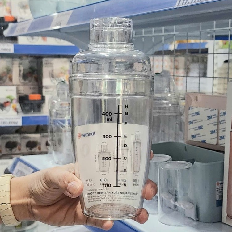 Bình lắc pha chế 460ml nhựa VIỆT NHẬT 0102 - Trong suốt, vạch chia, nắp kín