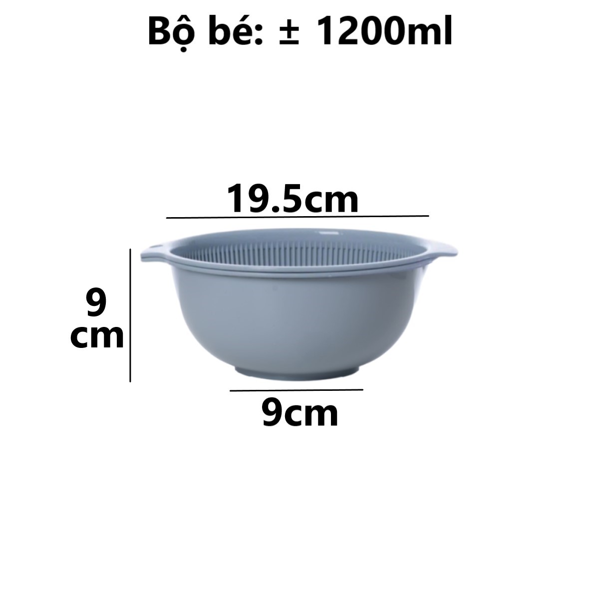 Bộ thau rổ tròn bé HOKORI 2375 - 2 lớp tách nước, đựng rau, rửa thực phẩm
