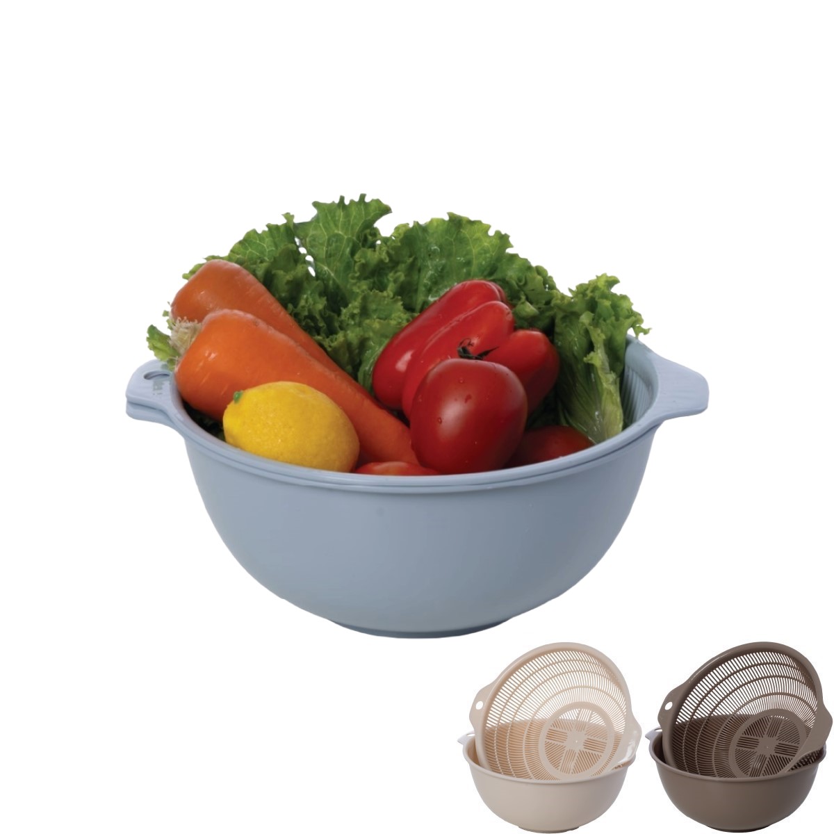 Bộ thau rổ tròn đại HOKORI 2377 - 2 lớp tách nước, đựng rau, rửa thực phẩm