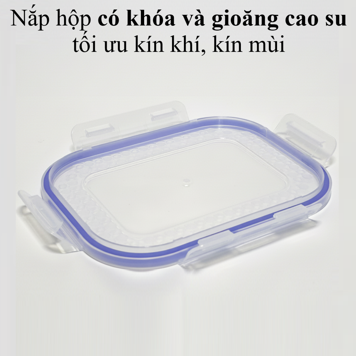 - Nắp có gioăng silicon và khóa gài 4 bên chắc chắn tối ưu độ kín khí, kín mùi
