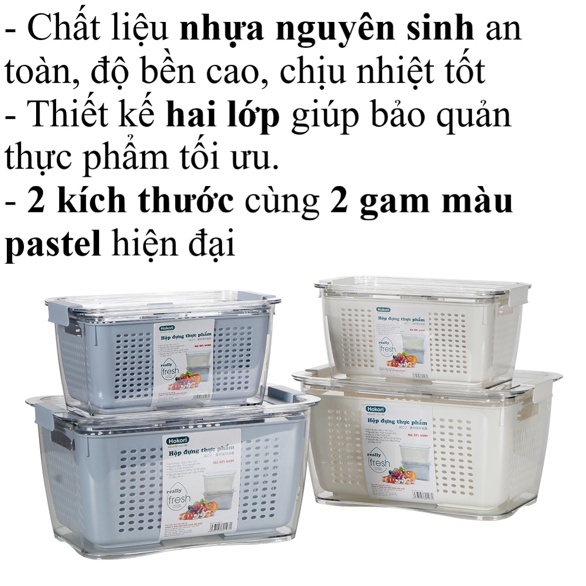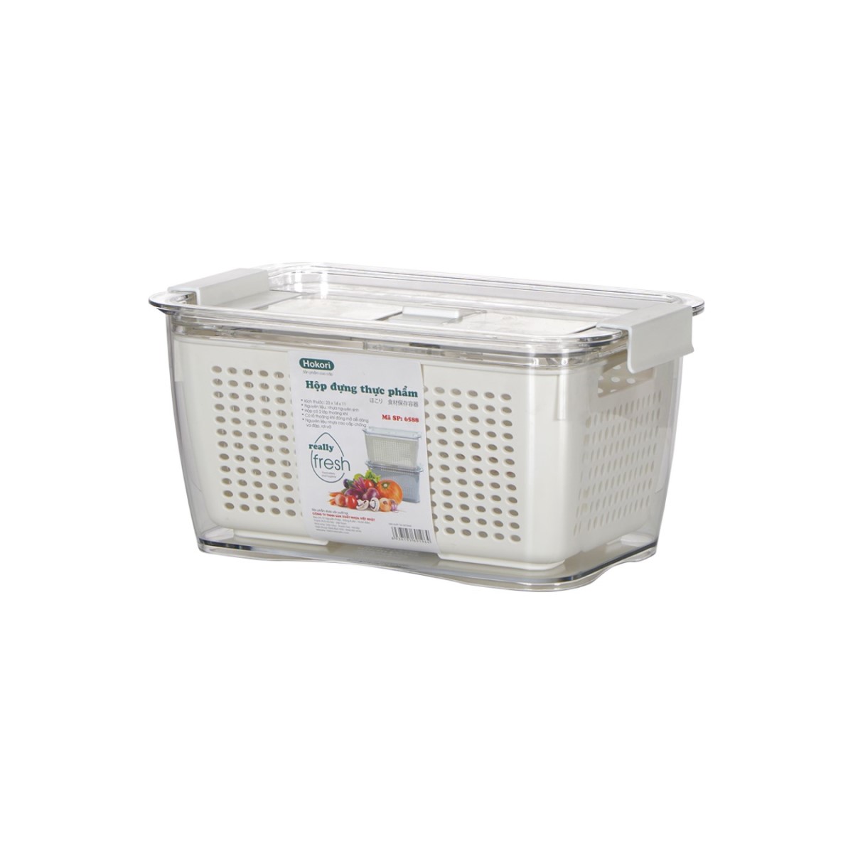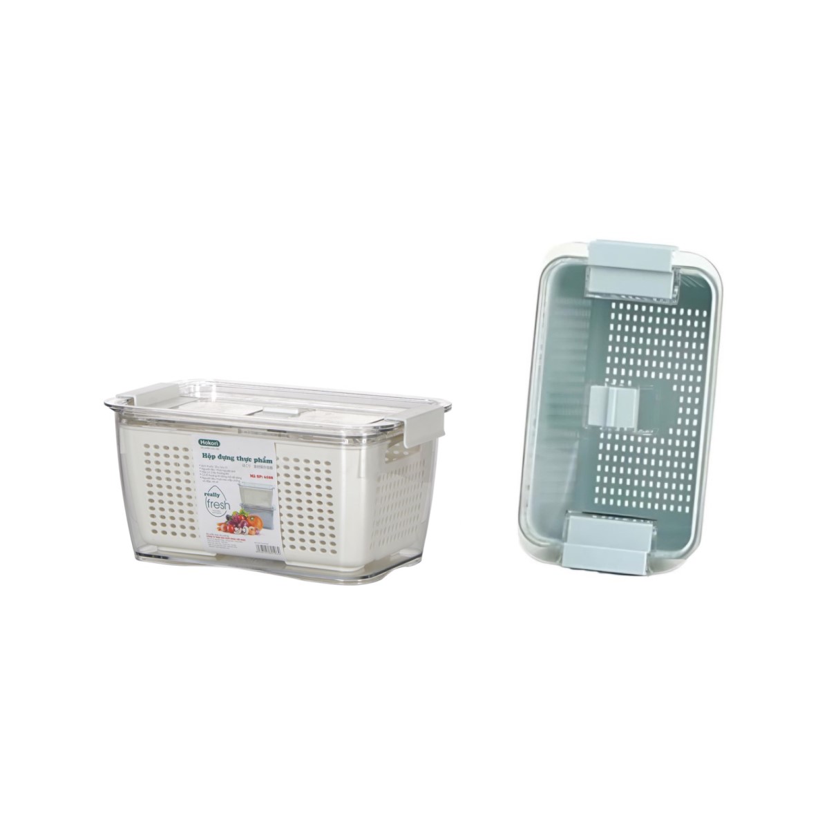 Bộ hộp rổ đựng thực phẩm bé HOKORI 6588 - Trong suốt, 2 lớp,đựng đồ ăn tủ lạnh