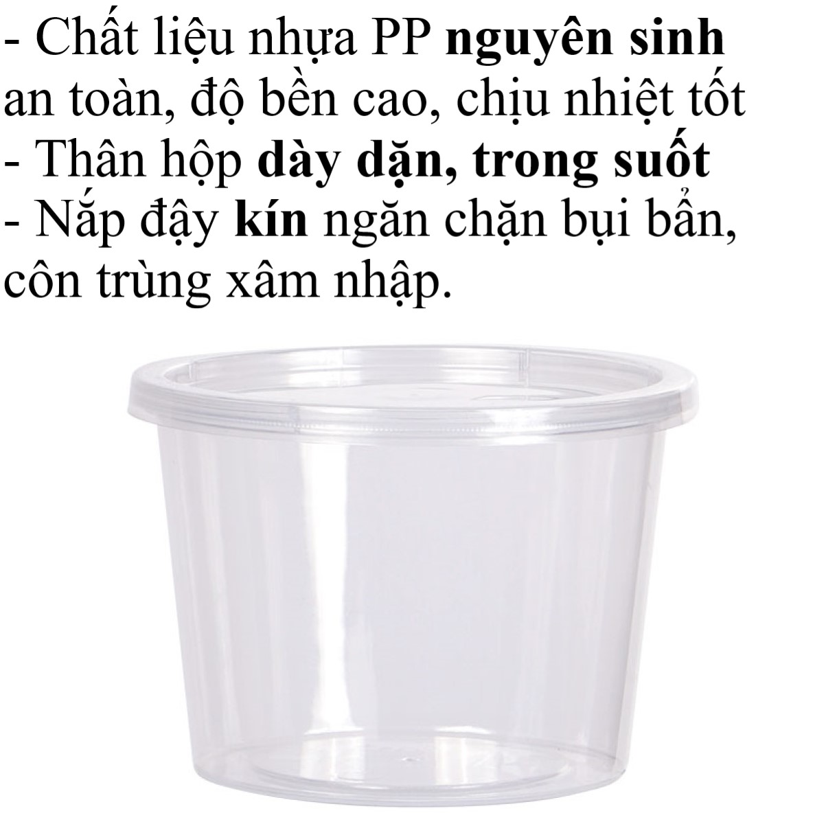 Hộp thực phẩm tròn 600ml nhựa VIỆT NHẬT 6701 - Trong suốt, có nắp, đựng phở, cháo, súp