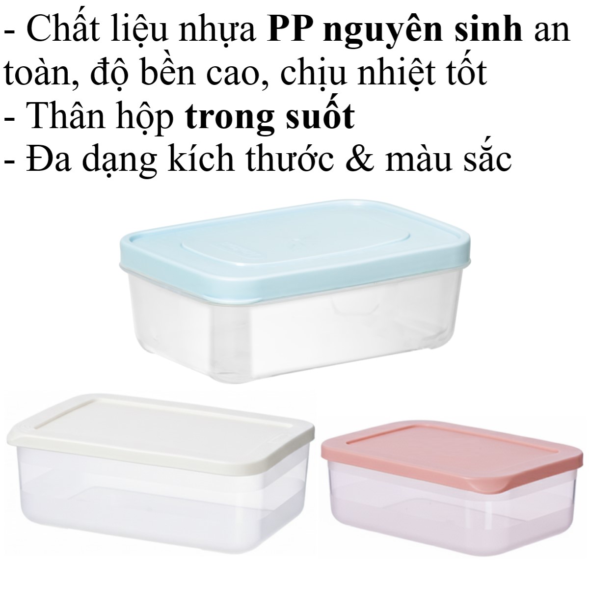 - Chất liệu nhựa nguyên sinh an toàn, độ bền cao, chịu nhiệt tốt (-20°C đến 120°C) phù hợp để tủ lạnh hoặc hâm nóng trong lò vi sóng.