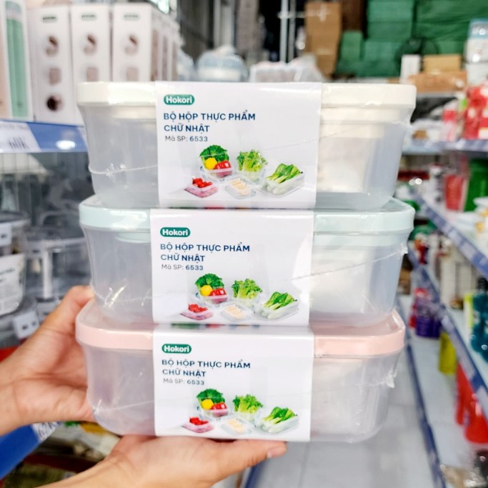 Hộp thực phẩm chữ nhật 1500ml HOKORI 6533-2 - Trong suốt, nắp kín, đựng đồ ăn tủ lạnh