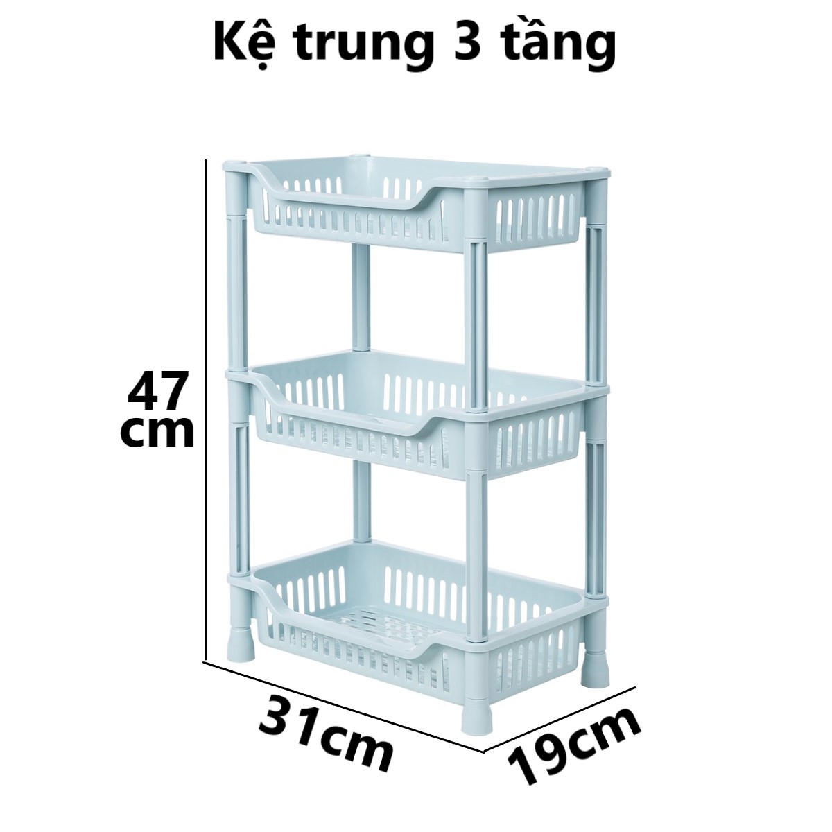 Kệ chữ nhật trung 3 tầng nhựa VIỆT NHẬT 5538-3 - Đựng đồ đa năng, nhà bếp, phòng tắm
