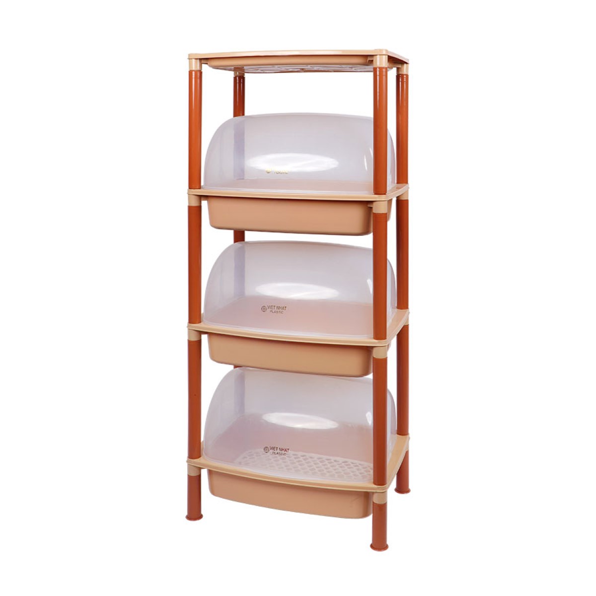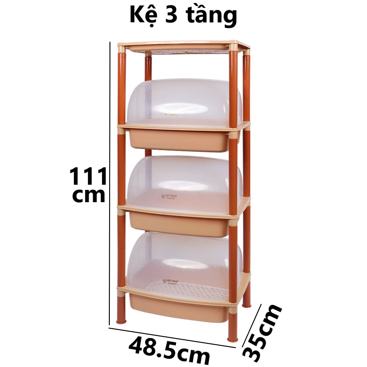 Kệ nắp 3 tầng nhựa VIỆT NHẬT 5552-3 - Đựng đồ đa năng, úp chén bát, rau củ, đồ nhà bếp