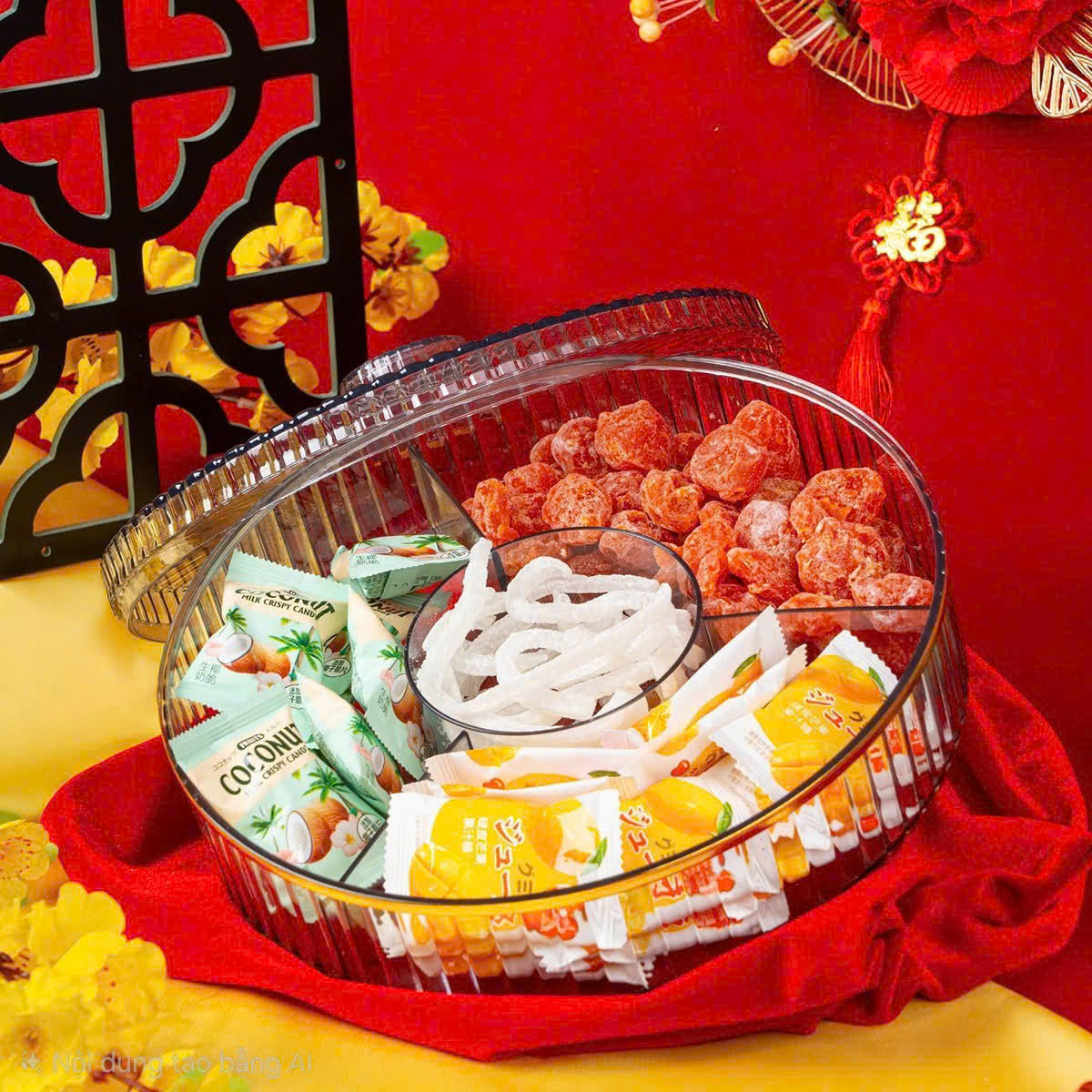 - Nhiều ngăn dùng để chia các loại bánh kẹo, mứt khác nhau.