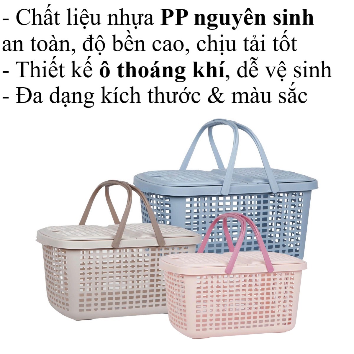 Giỏ đi sinh đại nhựa VIỆT NHẬT 2602 - Làn có nắp, đựng đồ, quần áo mẹ bé