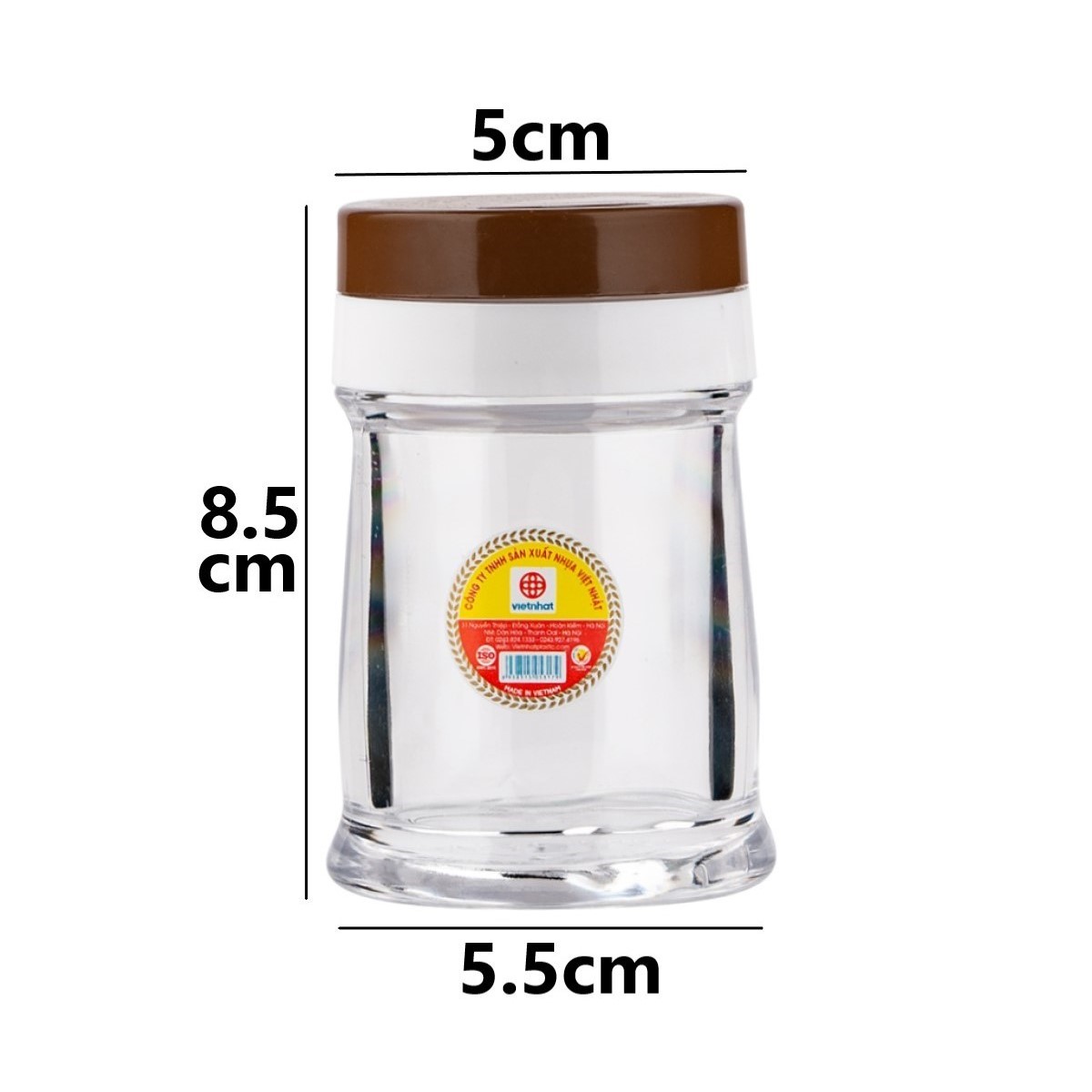 Lọ đựng tăm, tiêu nhựa VIỆT NHẬT 2966 - Trong suốt, nắp xoay, 2 đầu lớn nhỏ