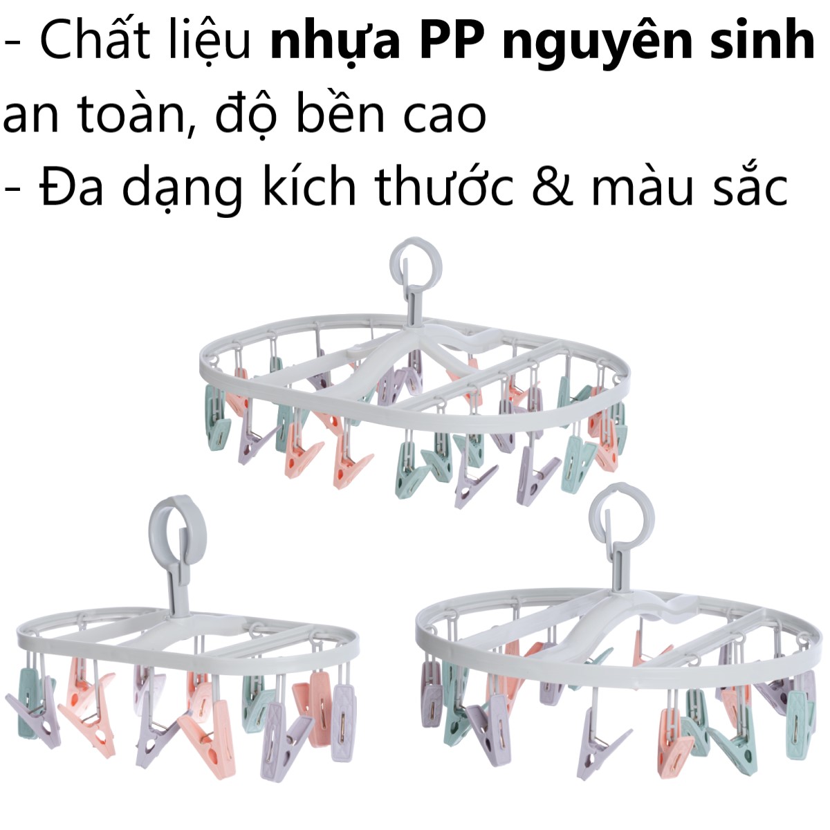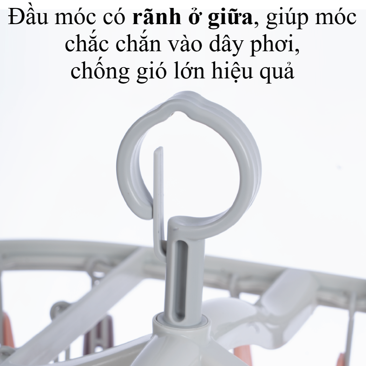 - Đầu móc lớn có khóa giúp móc chắc chắn vào dây phơi, chống gió lớn hiệu quả.