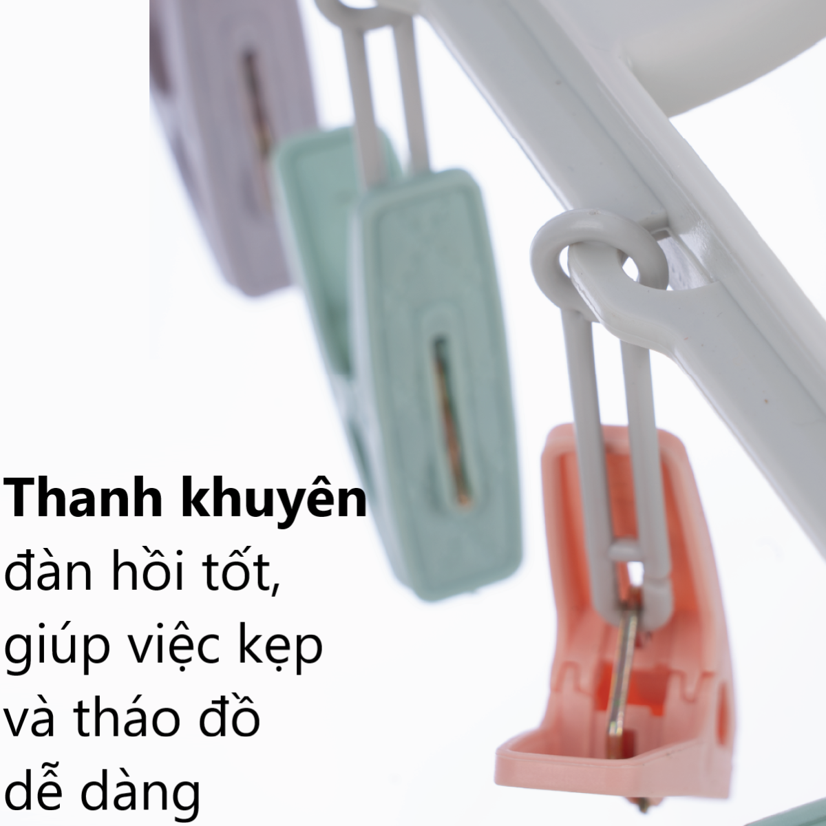 - Tích hợp nhiều kẹp, đầu kẹp thiết kế dạng răng cưa giữ quần áo chắc chắn