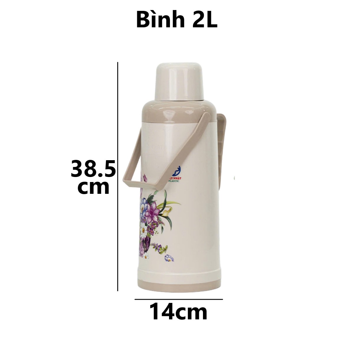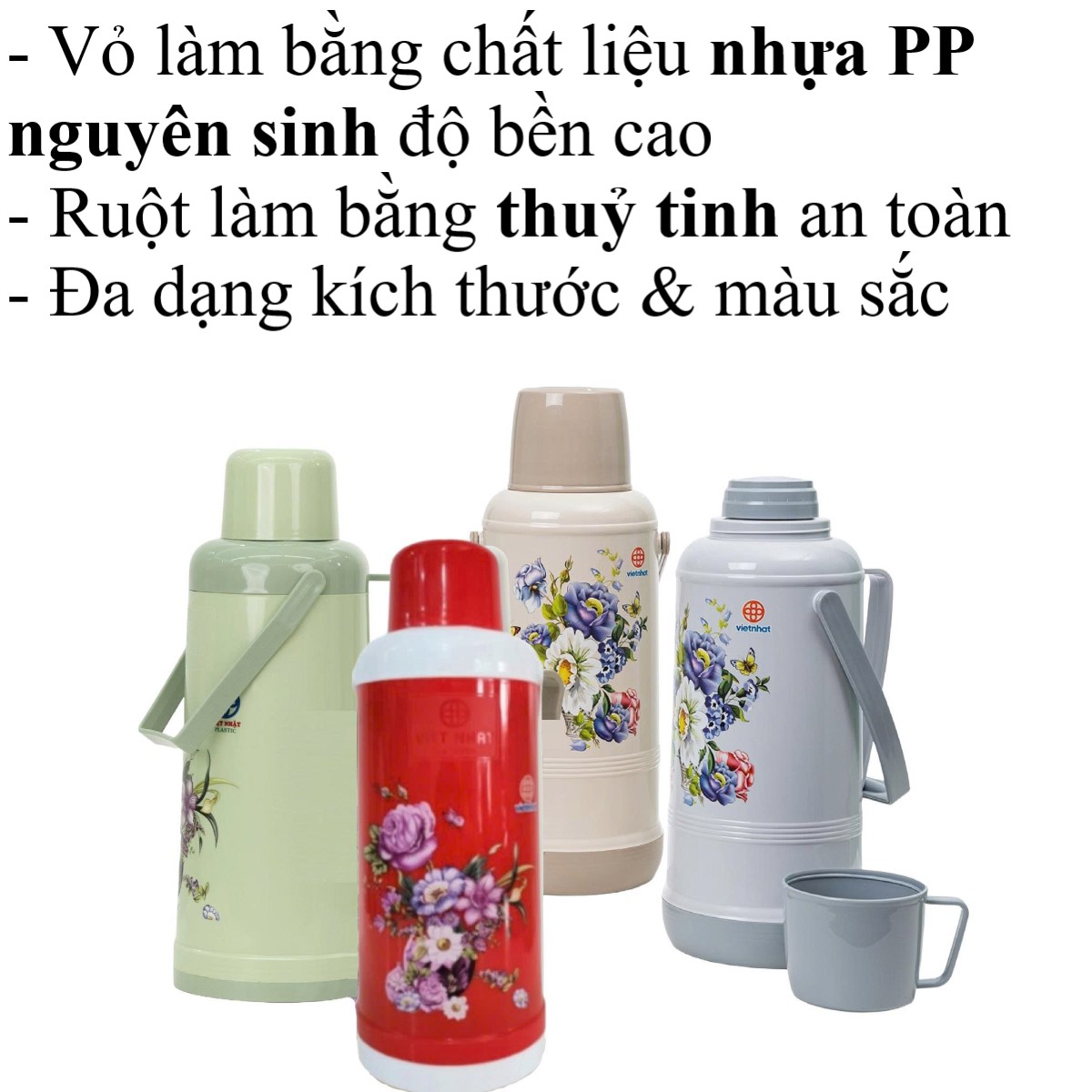 Bình thủy 2L nhựa VIỆT NHẬT 3986-1 - Ruột thủy tinh, giữ nhiệt nước nóng