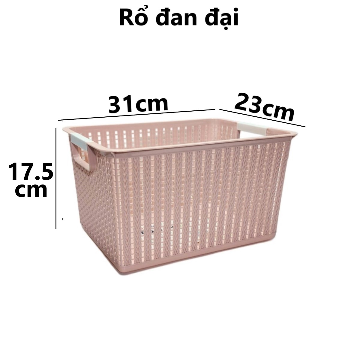 Rổ đan chữ nhật đại nhựa VIỆT NHẬT 3415-3 - Đựng tài liệu, bánh kẹo, đồ chơi, quần áo