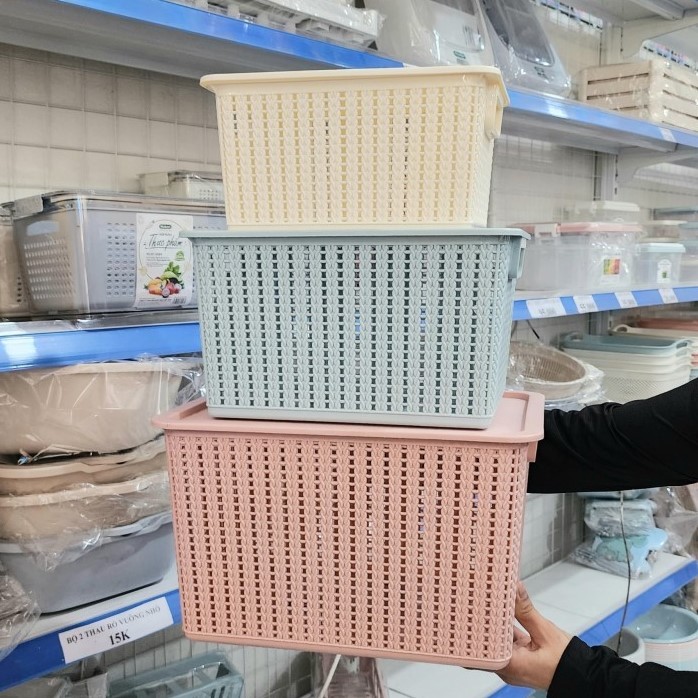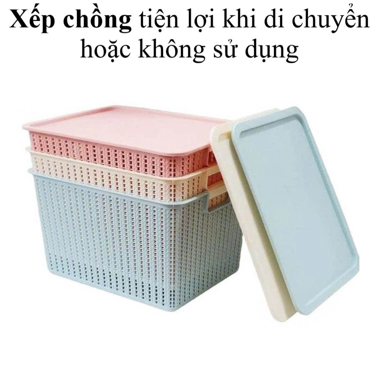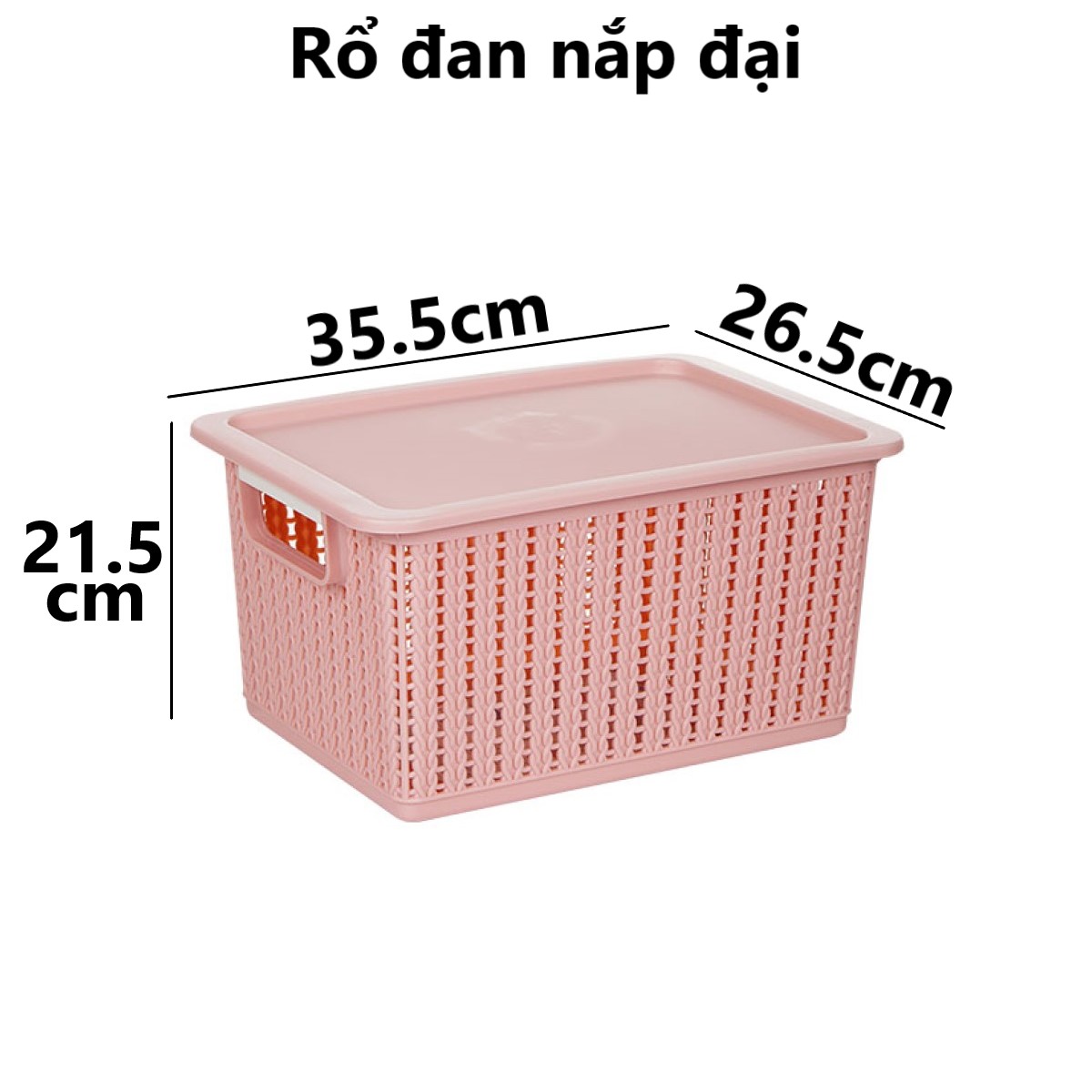 Rổ đan nắp chữ nhật đại nhựa VIỆT NHẬT 3415-3N - Đựng tài liệu, bánh kẹo, đồ chơi, quần áo