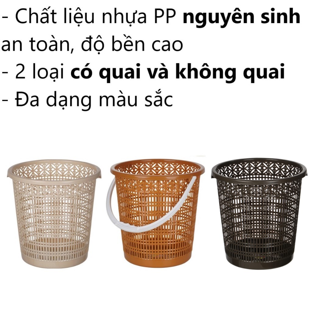 Sọt rác tròn nhựa VIỆT NHẬT 5147 - Có quai, họa tiết hoa đồng tiền