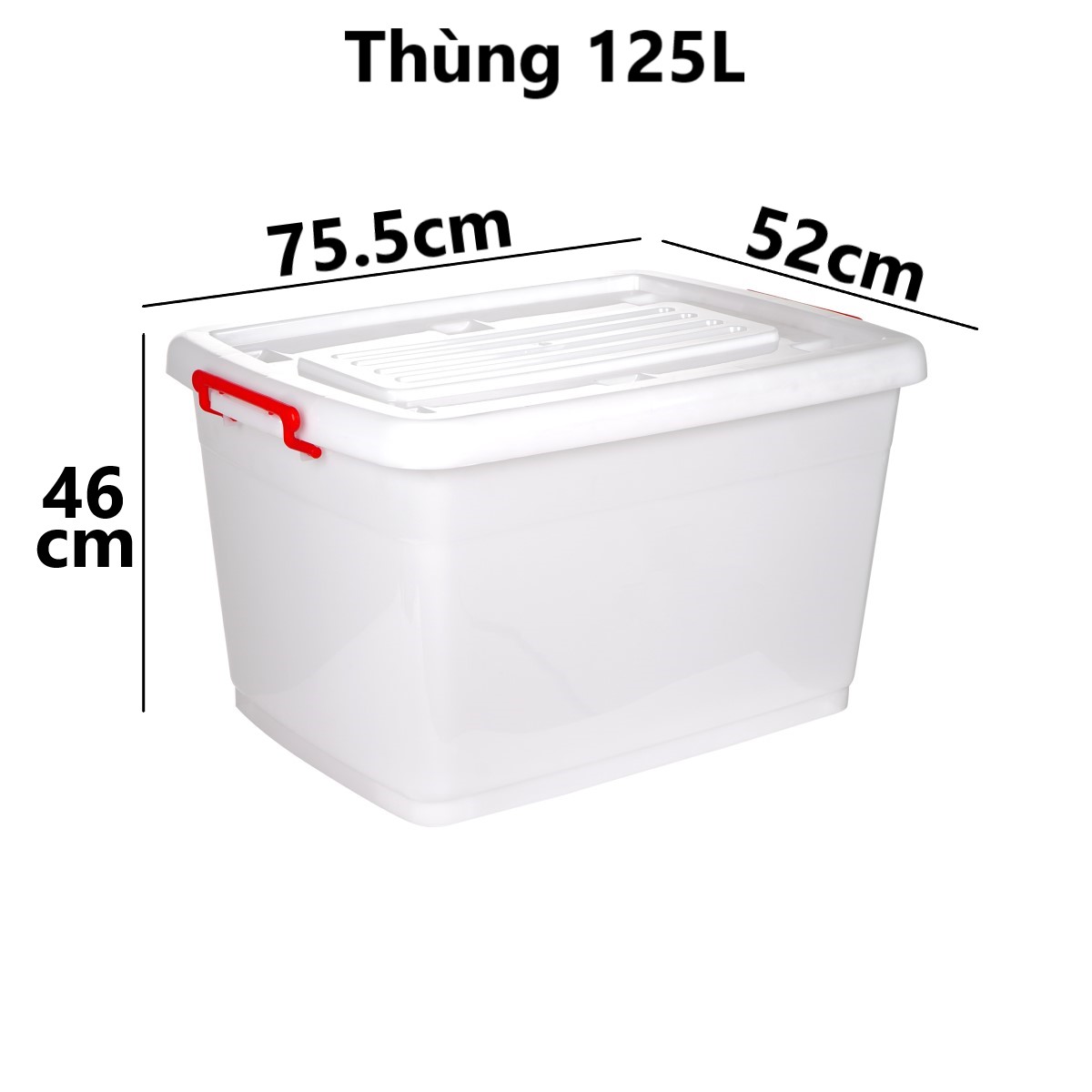 Thùng chữ nhật 125L nhựa VIỆT NHẬT 5329 - Có nắp, khóa gài, bánh xe - Đựng đồ, quần áo, gạo