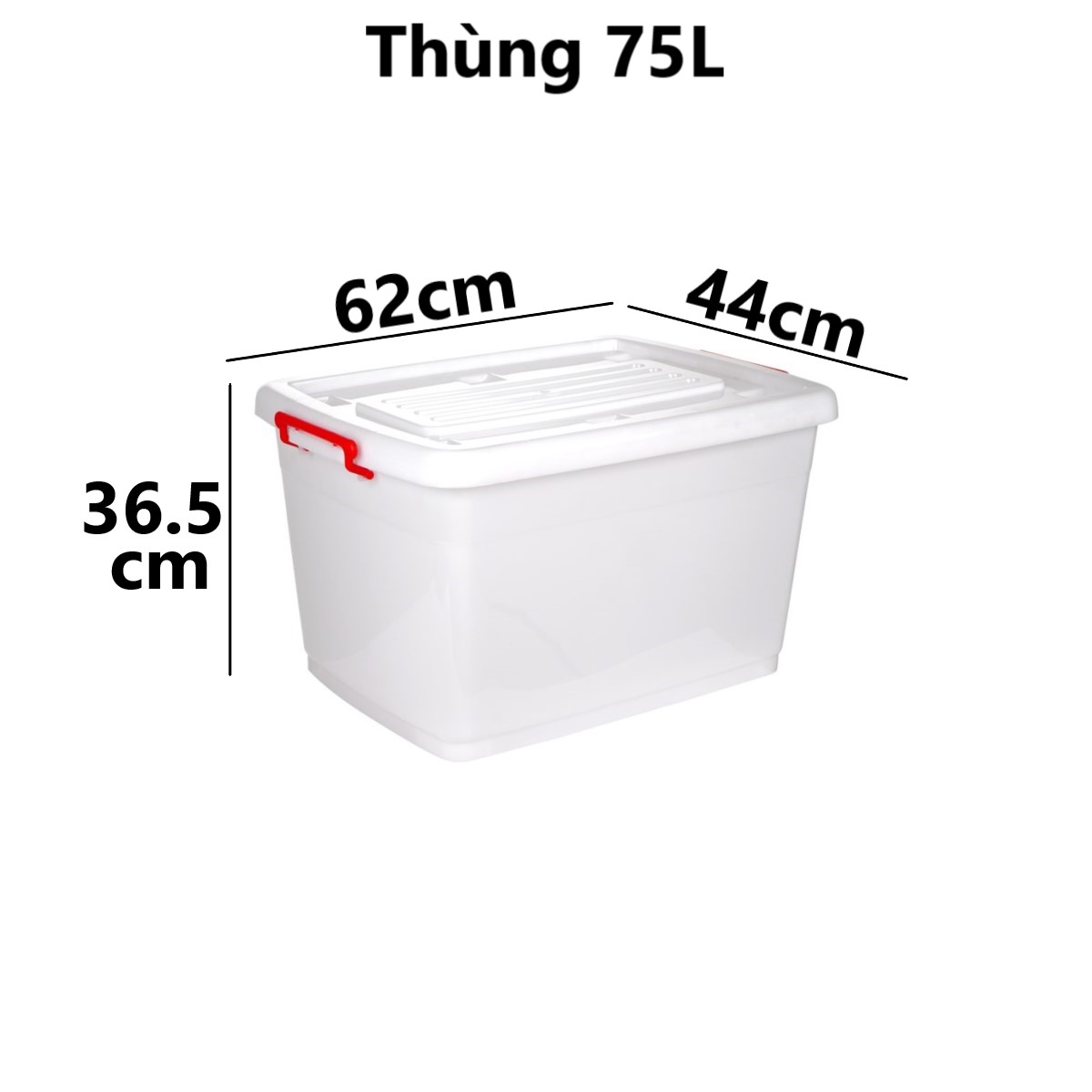 Thùng chữ nhật 75L nhựa VIỆT NHẬT 5335 - Có nắp, khóa gài, bánh xe - Đựng đồ, quần áo, gạo
