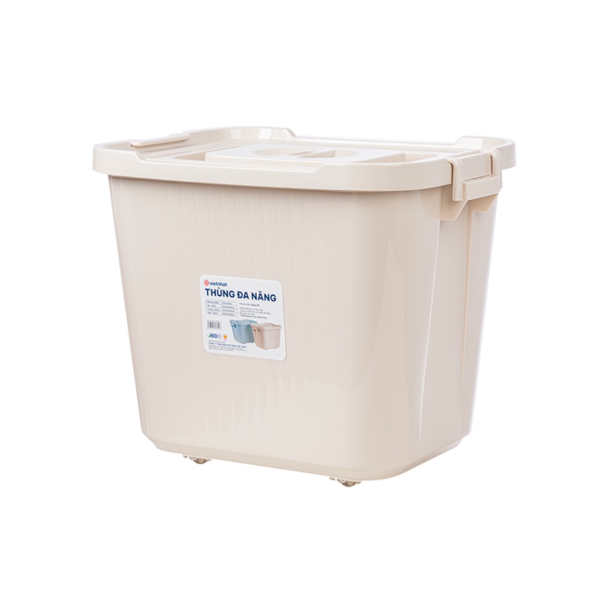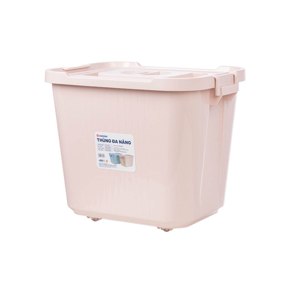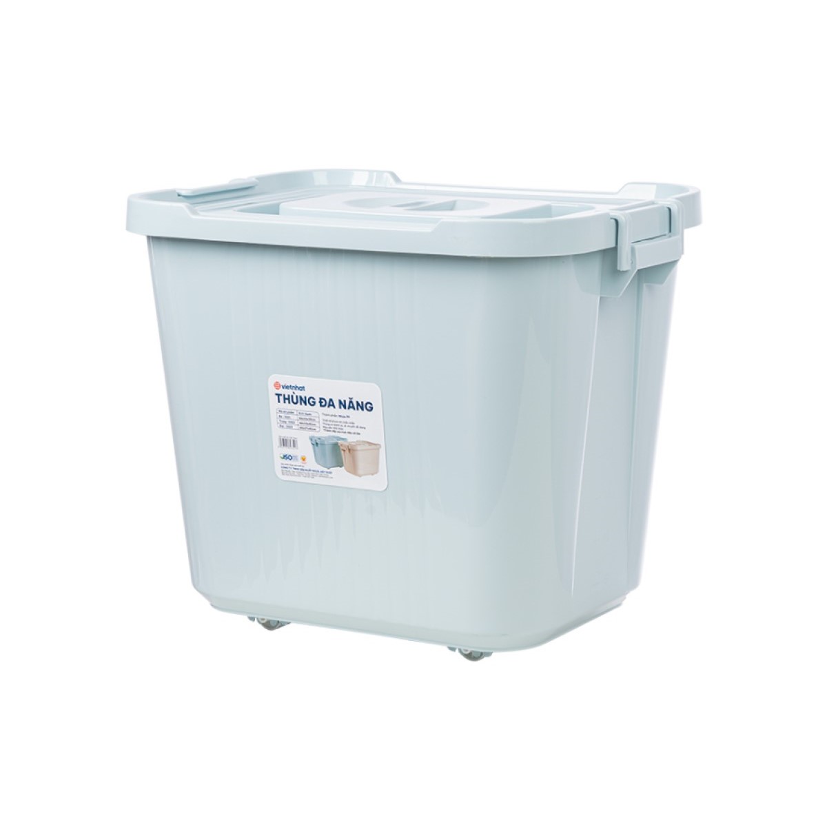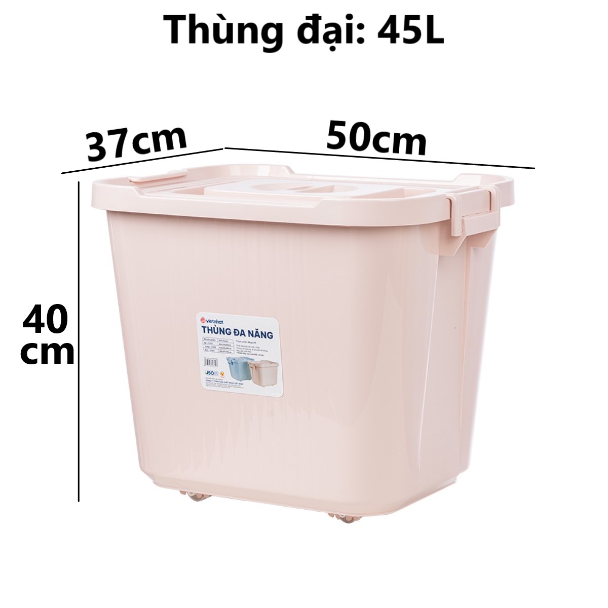 Thùng đa năng đại 45L nhựa VIỆT NHẬT 5323 - Có nắp, đựng quần áo, gạo, đồ chơi bé